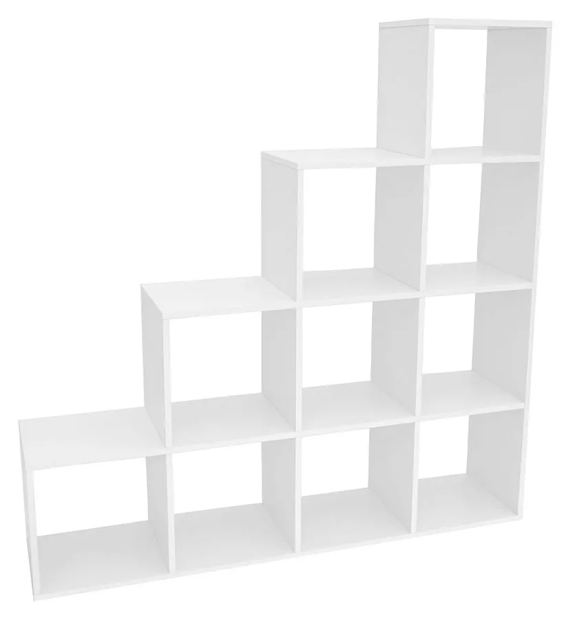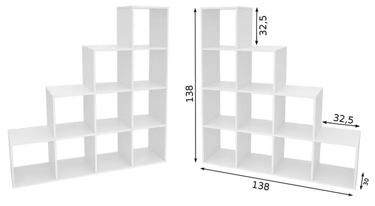 Fajny regał w schodkowym designie. Wykończony w skrajnym minimalizmie, ale sam ten kształt jest ciekawy także wyróżnia się. Dziesięć kwadratowych przegródek zapewnia bardzo dużo miejsca a tego akurat było mi trzeba. Zdecydowanie polecam do otwartych i dużych wnętrz. Cena adekwatna do jakości!!
