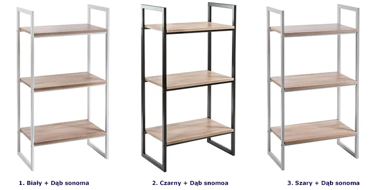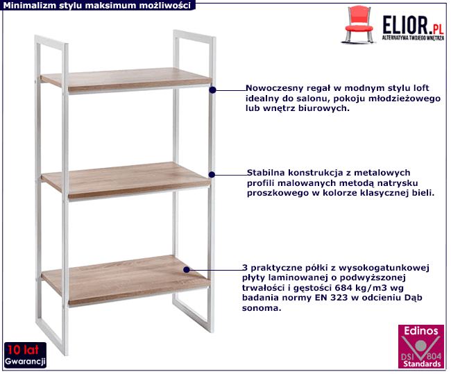 - Modny kolor: biały + dąb sonoma. Kliknij w link i sprawdź także inne regały industrialne w sklepie Edinos.pl. Stwórz swój praktyczny zestaw mebli.