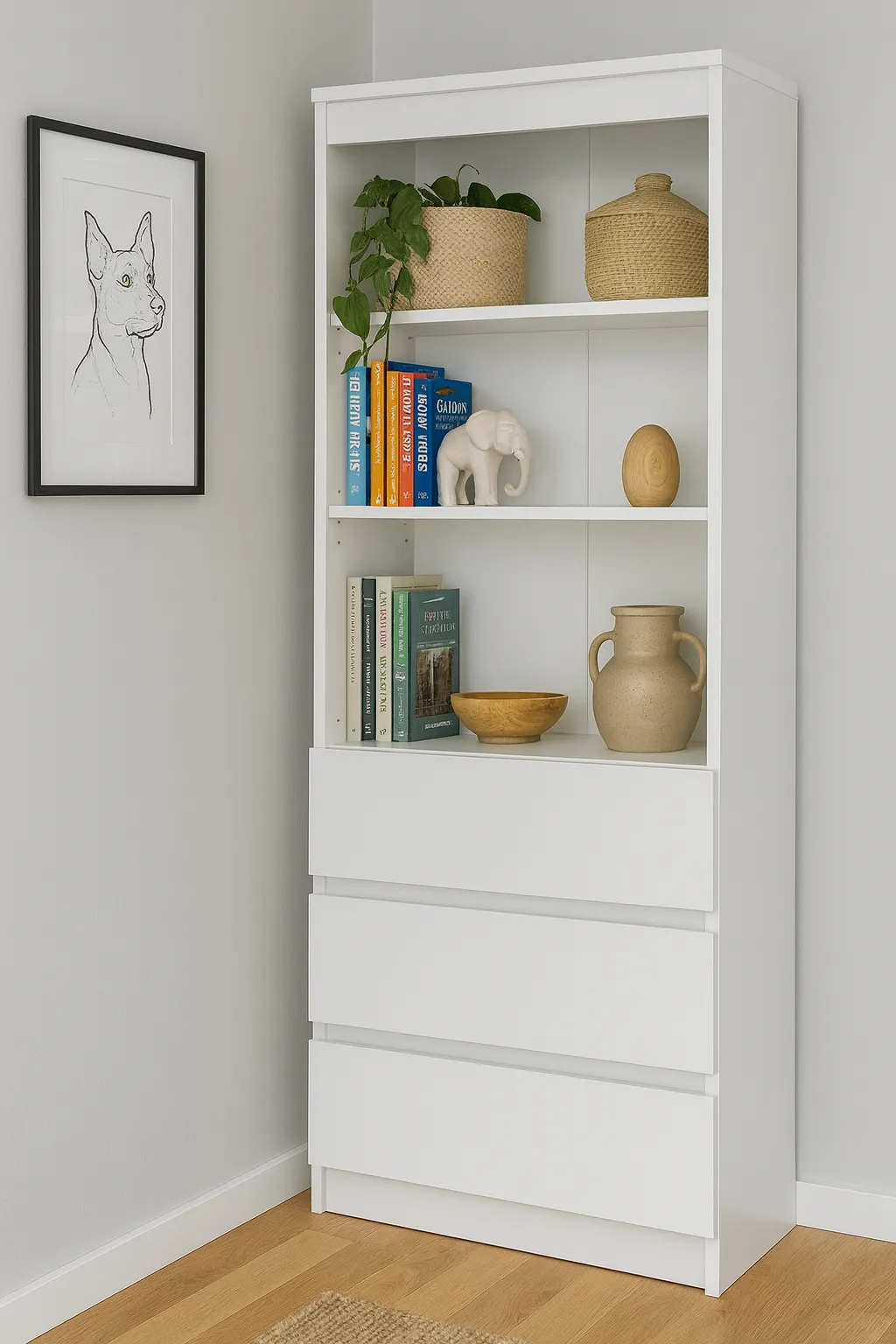 "Ujarzmienie" własnego wnętrza wcale nie jest prostą sprawą. Przedmioty rzadko kiedy mają swoje stałe miejsce, a czasem nawet dzieją się rzeczy niemal magiczne. Czy nie zdarzyło Ci się kiedyś, że długopis leżał w łazience na pralce, ładowarka w kuchennej szufladzie, a rachunki zaginęły bez śladu? Czyżby odpowiedź brzmiała twierdząco? Dlatego właśnie powstał praktyczny regał Olmi. Funkcjonalny mebel, dzięki któremu przedmioty użytku codziennego w końcu znajdą swoje miejsce. Już nie będziesz ich szukać w najmniej spodziewanych miejscach. Wszystkie będą w jednym miejscu, zawsze pod ręką. Trzy szuflady dają Ci pole do popisu, a otwarte półki pozwolą na wyeksponowanie zdjęć, książek, dekoracji i bibelotów. Regał jest na tyle praktyczny i uniwersalny, że może stanąć niemal wszędzie: w salonie, sypialni, biurze, pokoju młodzieżowym i przedpokoju. To mebel, który pomoże zapanować Ci nad chaosem!