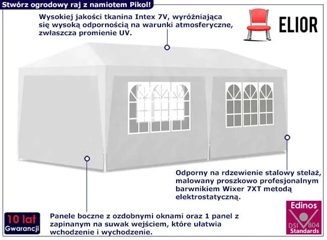 • Kolor: biały. Kliknij w link i sprawdź także inne namioty ogrodowe w sklepie Edinos.pl. Stwórz swóją praktyczną przestrzeń.