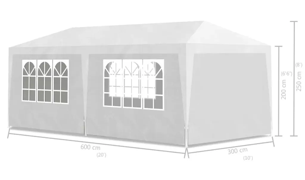 • Wymiary: szerokość: 300 cm, długość: 600 cmwysokość: 255 cm, wysokość okapu nad ziemią: 200 cm.