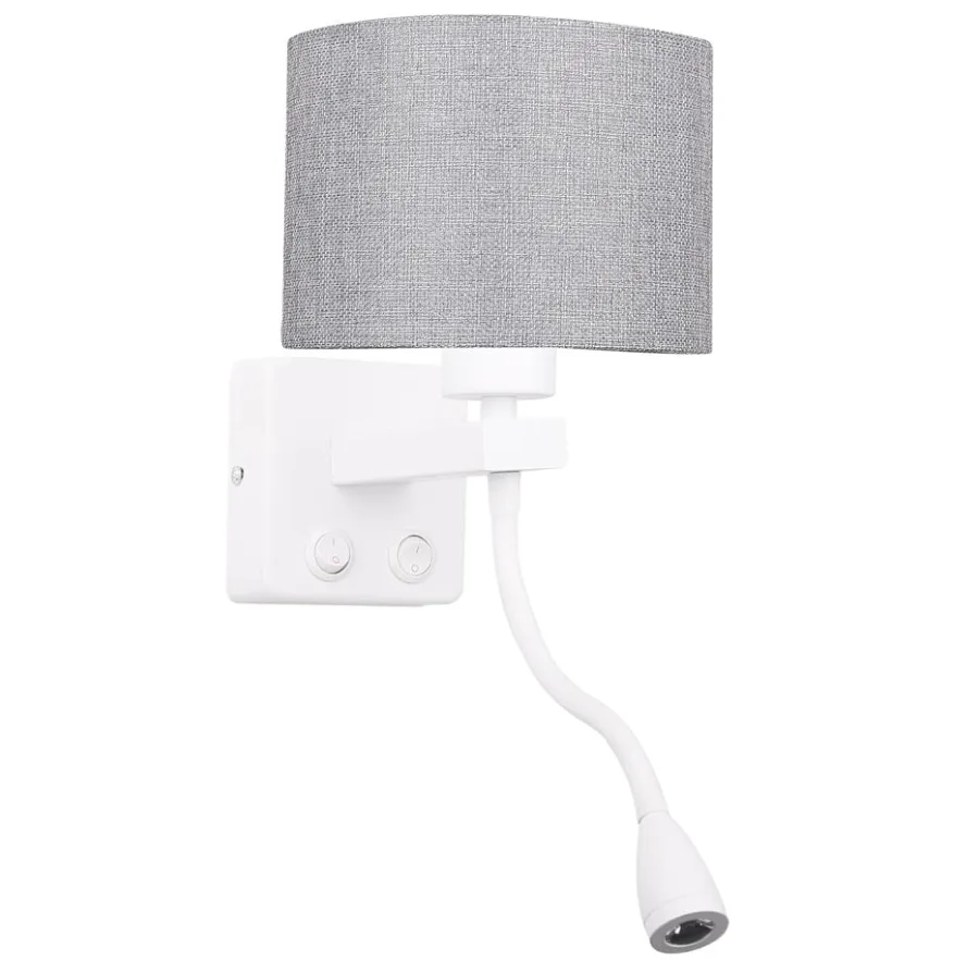 Co sprawia, że nasz Kinkiet K238-Fono jest tak wyjątkowy? Przede wszystkim jej materiały konstrukcyjne. Korpus lampy wykonany jest z wytrzymałego metalu, co gwarantuje długotrwałą użyteczność. Abażur z grubo tkanego materiału w połączeniu z PCV nadaje jej elegancki wygląd i zapewnia miękkie rozproszenie światła. To połączenie trwałości i estetyki. Kinkiet K238-Fono zachwyca także swoim unikalnym kształtem. Zaprojektowany specjalnie z myślą o nowoczesnych wnętrzach, łączy w sobie minimalistyczny design z funkcjonalnością. Neutralny kolor abażuru doskonale komponuje się z różnymi aranżacjami, sprawiając, że lampa pasuje zarówno do nowoczesnych, jak i klasycznych przestrzeni. Co więcej, ta lampa oferuje wiele praktycznych funkcji. Każde źródło światła w kinkiecie K238-Fono posiada osobny włącznik, co daje pełną kontrolę nad oświetleniem. Elastyczne ramię lampy wyposażone w zintegrowaną diodę LED pozwala swobodnie kierować światło w dowolnym kierunku. Nasz kinkiet dostępny jest w dwóch wariantach kolorystycznych!