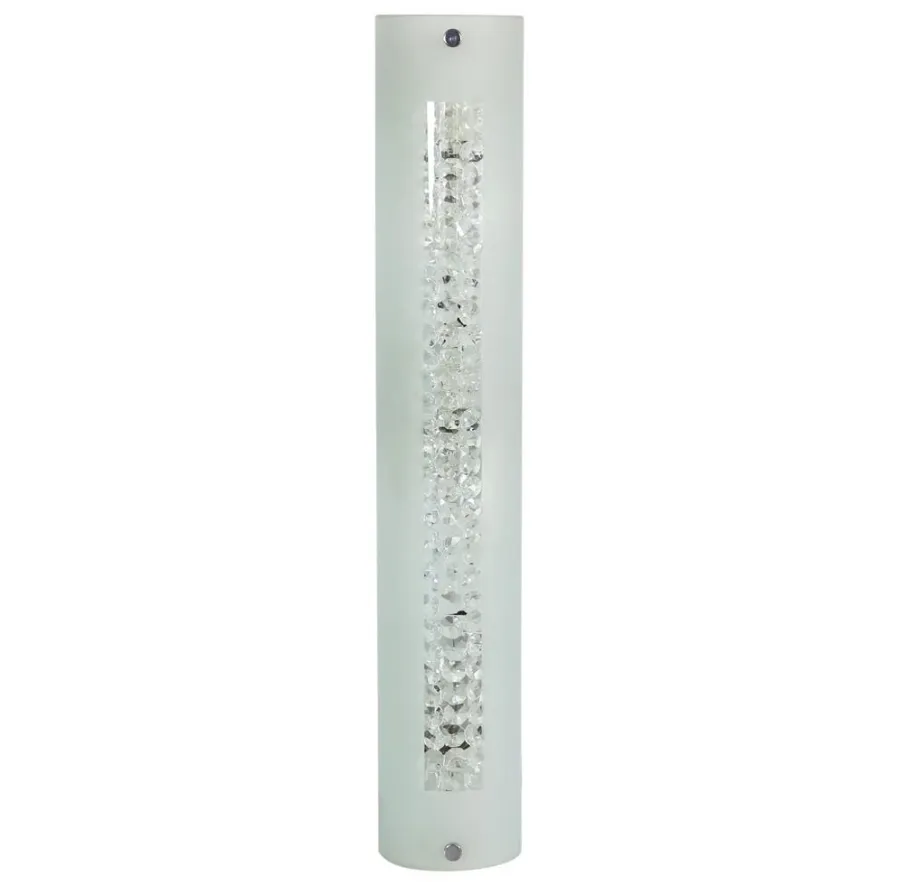 Lampa sufitowa K469-Gemma to wyjątkowy element wystroju wnętrza, który wyróżnia się nie tylko funkcjonalnością, ale również estetyką i finezją wykonania. Jej klosz został zgięty, zachowując formę prostokąta, a jego powierzchnia została ozdobiona oryginalnym wzorem, uzyskanym poprzez precyzyjny proces produkcji, obejmujący piaskowanie, polerowanie i malowanie. Klosz, polerowany po stronie zewnętrznej, prezentuje się niezwykle elegancko, a efekt został dodatkowo wzbogacony poprzez ręcznie doklejone kryształki, które dodają mu subtelnego blasku i luksusowego wykończenia. W połączeniu ze stalową podstawą klosz tworzy harmonijną całość, która doskonale wpisuje się w różnorodne aranżacje wnętrz. Stalowa podstawa gwarantuje solidność i stabilność lampy, jednocześnie zapewniając eleganckie wykończenie. Szklany klosz, stanowiący element centralny lampy, doskonale rozprasza światło, tworząc przyjemną atmosferę oświetleniową w pomieszczeniu. Dzięki połączeniu wysokiej jakości materiałów, unikatowego wzornictwa oraz precyzyjnego wykonania, lampa sufitowa K469-Gemma stanowi nie tylko funkcjonalne oświetlenie, ale również wyjątkowy element dekoracyjny, który doda wyrafinowanego charakteru każdemu wnętrzu.