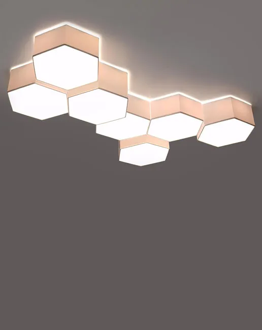 Umieszczając kilka plafonów obok siebie możesz stworzyć spektakularną konstrukcję świetlną: