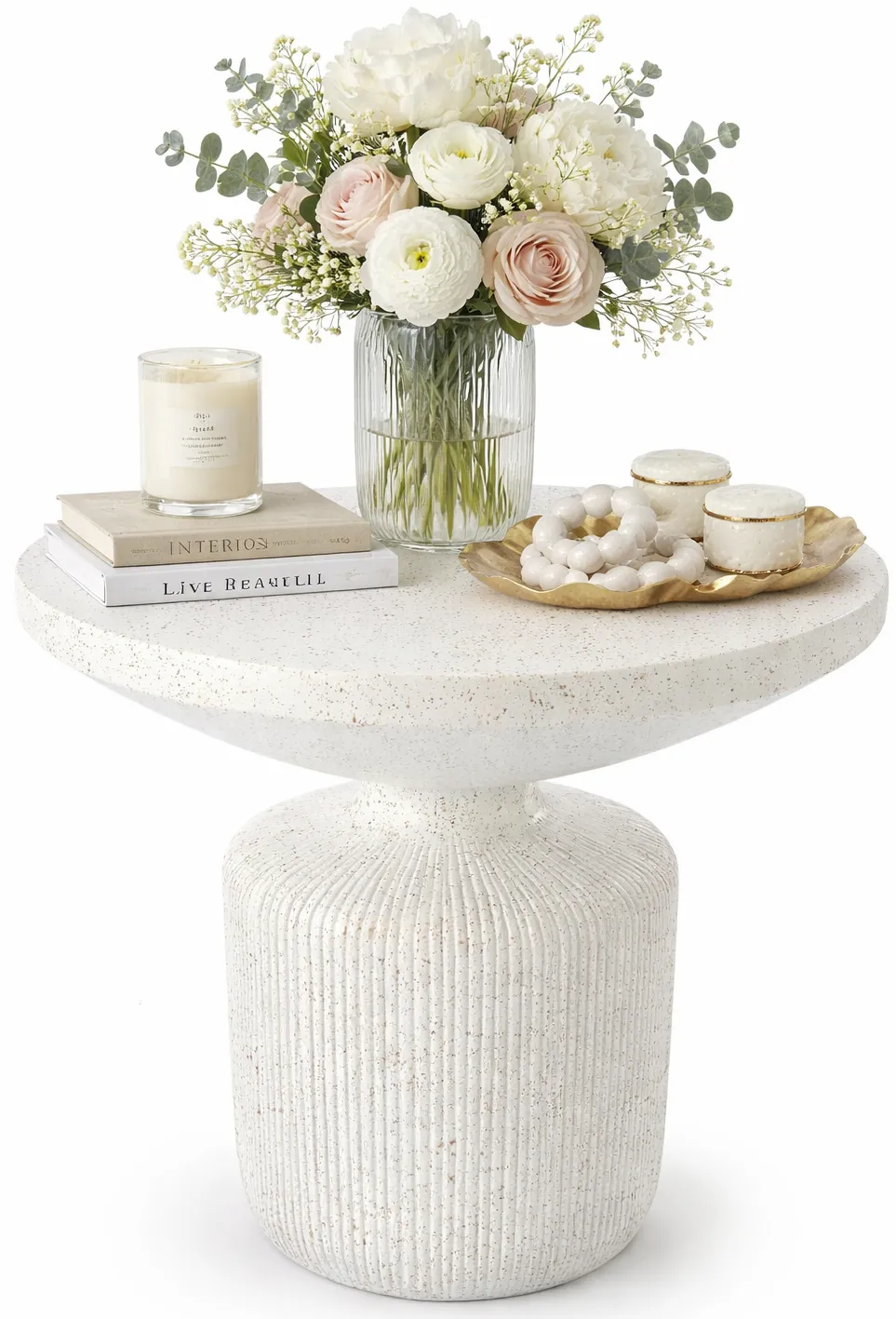 - Okrągły blat idealny na kubek kawy, książkę lub dekoracyjne drobiazgi.