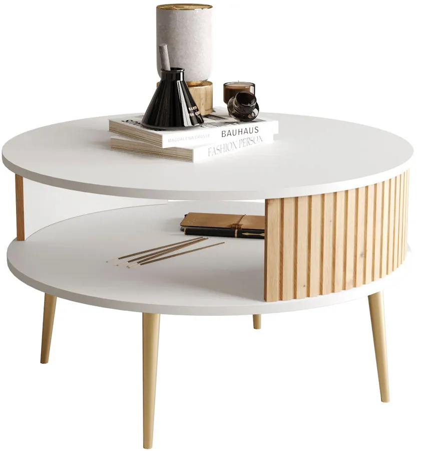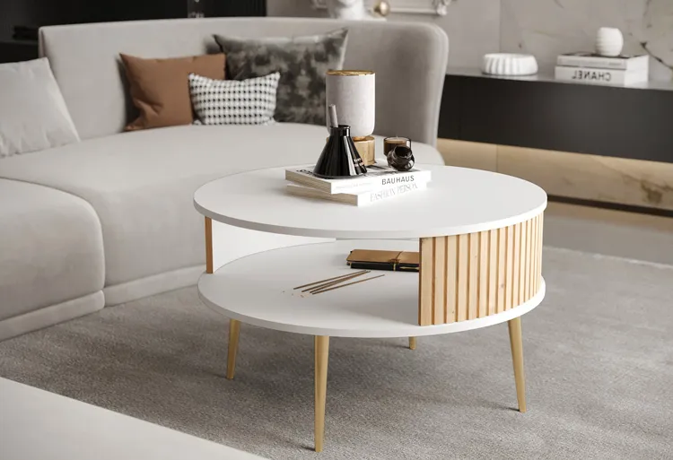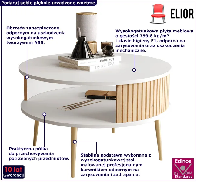 Dotyczy: Biały okrągły stolik kawowy z półką - Alwida 4X
