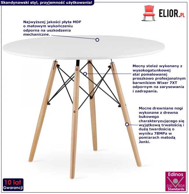 • Modny kolor: biały, naturalny odcień drewna bukowego. W naszej ofercie posiadamy także inne okrągłe stoły skandynawskie. Kliknij i stwórz swój wyjątkowy zestaw mebli.