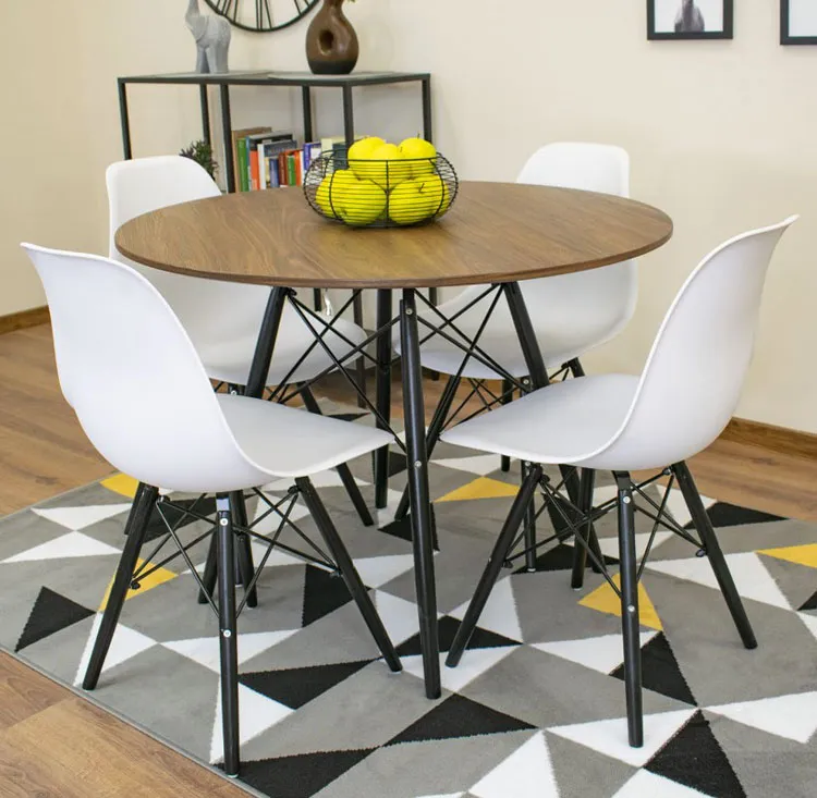 Styl skandynawski pełna parą, surowy oddający klimat pięknej ale spartańskiej skandynawii. Okrągły kształt wygląda ciekawiej niż zwykły kwadrat a jane kolorki pasują do klimatów minimalizmu który jest obecnie na topie. Stół w sam raz do jadalni ale nie tylko, montaż to formalność poradziłem sobie w parę chwil.