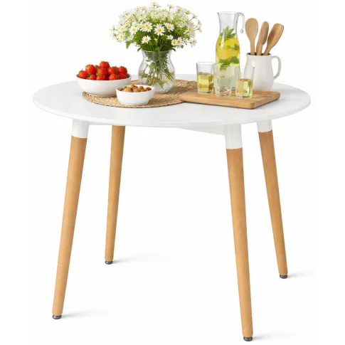Biały okrągły stół na drewnianych nogach 80 cm - Minte 4X