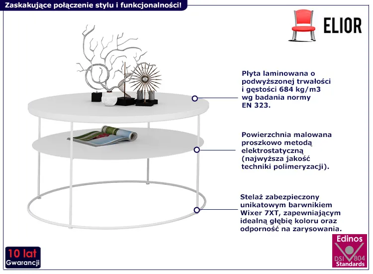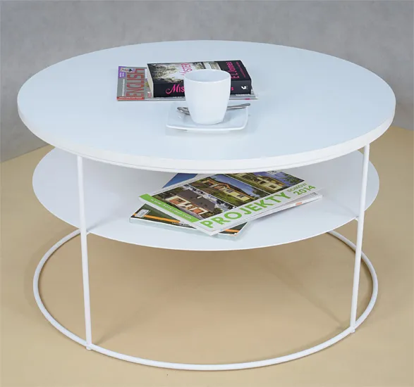 Dotyczy: Okrągły stolik kawowy z białym stelażem beton - Rencontrer 5X