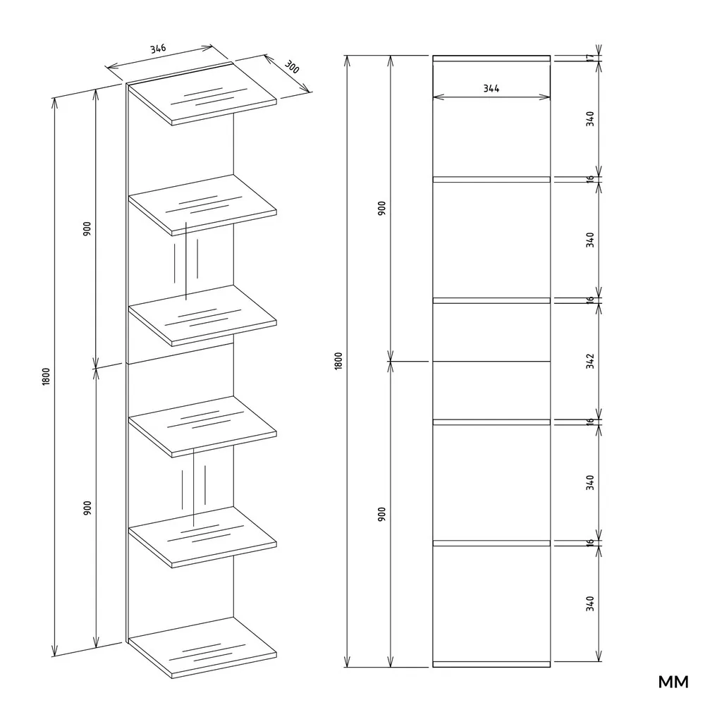 • 6 pojemnych, otwartych półek – idealne miejsce na książki, dokumenty i dekoracje,