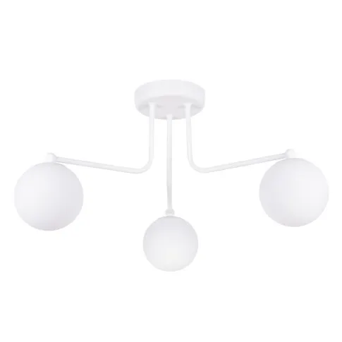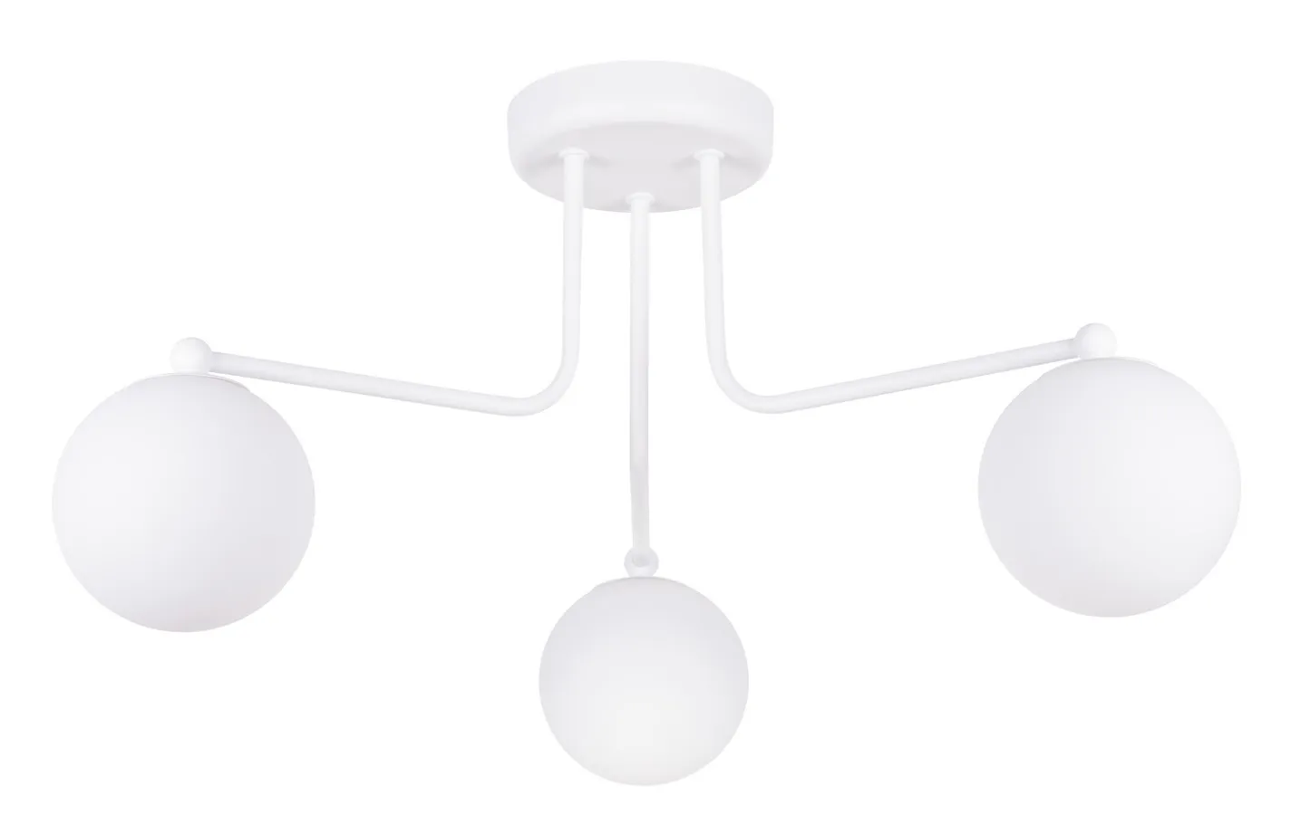 Efektowna, trzyramienna lampa to prawdziwa ozdoba wnętrza, łącząca minimalistyczny design z funkcjonalnością. Jej smukła, stalowa konstrukcja przywodzi na myśl ponadczasową elegancję, podczas gdy białe, szklane klosze delikatnie rozpraszają światło, tworząc nastrojowe oświetlenie. Doskonała dekoracja przedpokoju, korytarza, salonu, jadalni czy sypialni, która doda wnętrzu nowoczesnego szyku i sprawi, że pomieszczenie zaświeci nowym blaskiem. Prosta forma i uniwersalna kolorystyka sprawiają, że lampa idealnie wpisze się zarówno w klasyczne, jak i bardzo nowoczesne aranżacje.