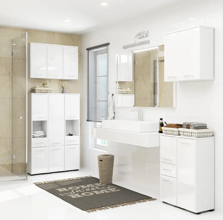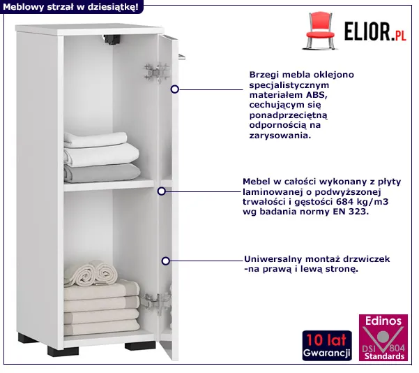 - Kolor: biały. Kliknij w link i sprawdź także inne regały i szafki łaziekowe w kolorze białym w sklepie Edinos.pl. Stwórz swój praktyczny zestaw mebli.