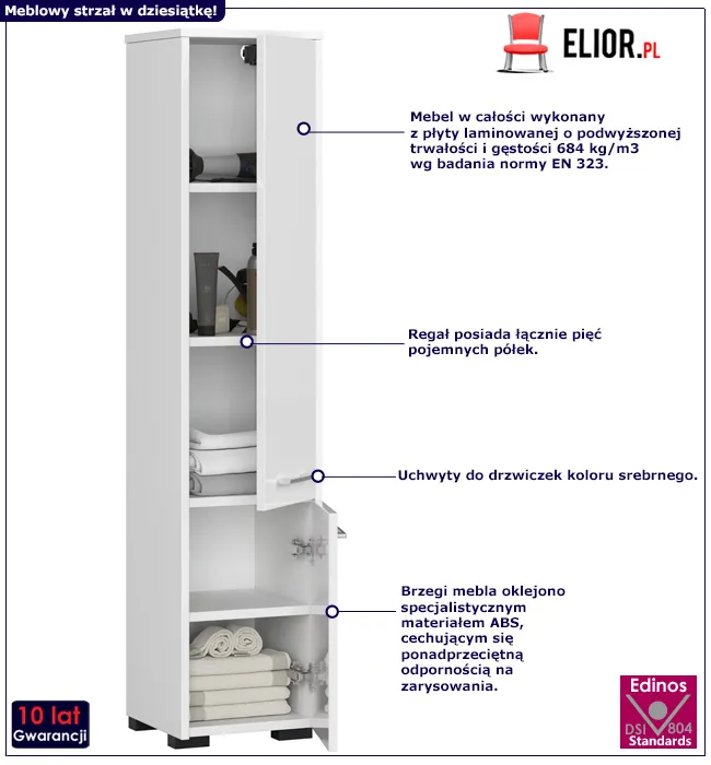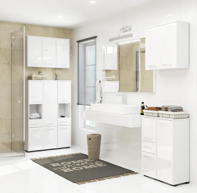 • Kolor: biały. Kliknij w link i sprawdź także inne szafki łazienkowe w połysku w sklepie Edinos.pl. Stwórz swój praktyczny zestaw mebli.