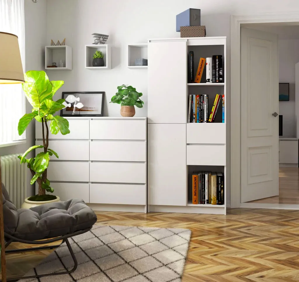 Dotyczy: Skandynawski regał do salonu biały + dąb sonoma - Vasco 3X