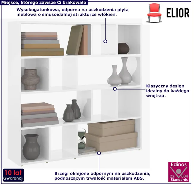 • Kolor: biały połysk. W naszej ofercie posiadamy także inne regały białe.