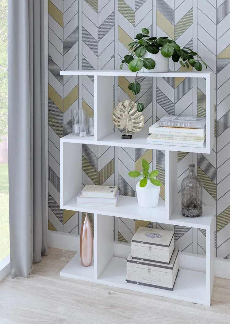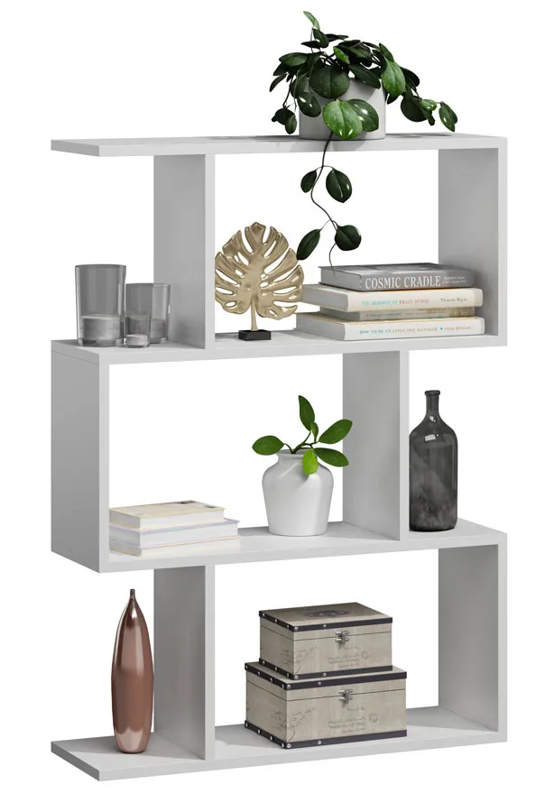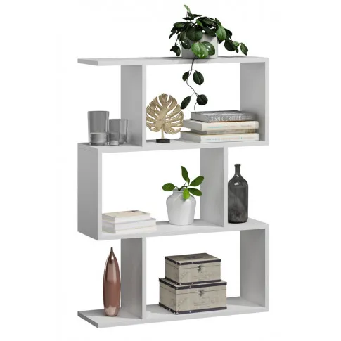 Prezentowany przez nas model regału charakteryzuje się minimalizmem i niebywałą możliwością organizacji przestrzeni. Mebel został wykonany z jednego materiału co nie powoduje wrażenia przesytu i przepychu w pomieszczeniach. Ponadto uniwersalna kolorystyka idealnie wkomponuje się w wystrój wnętrza Twojego domu w subtelny sposób podkreślając jego naturalny i delikatny akcent. Innowacyjny projekt to zaleta, która kryje w sobie niesymetryczny układ półek. Dzięki półkom oraz bocznych wysunięciach możesz znaleźć odpowiednie miejsce dla przedmiotów o różnej wielkości. Dodatkowym atutem są wymiary mebla oraz ułożenie półek na różnych wysokosciach, co pozwoli na korzystanie z niego osobom o różnym wzroście. Model regału o takich cechach idealnie odnajdzie się w salonie, domowej bibliotece, przedpokoju, sypialni lub pokoju dziecięcym i młodzieżowym. Dzięki niemu z pewnością każdy znajdzie idealne miejsce dla różnego rodzaju drobiazgów, ozdób, roślin i książek. Takie atuty pozwolą Ci na dopasowanie regału do pomieszczeń zaaranżowanych w stylu nowoczesnym, minimalistycznym i klasycznym.