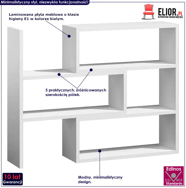 Efektowne połączenie nowoczesnego, minimalistycznego stylu, profesjonalnej jakości i wysokiego komfortu użytkowania! Z przyjemnością prezentujemy Ci innowacyjny regał Inglis 2X marki Edinos Premium. Pięć praktycznych półek, możliwość narożnego ustawienia oraz modny, minimalistyczny design to tylko niektóre z jego licznych zalet. Chcesz wiedzieć więcej? Zapraszamy do zapoznania się z opisem tego fascynującego mebla!