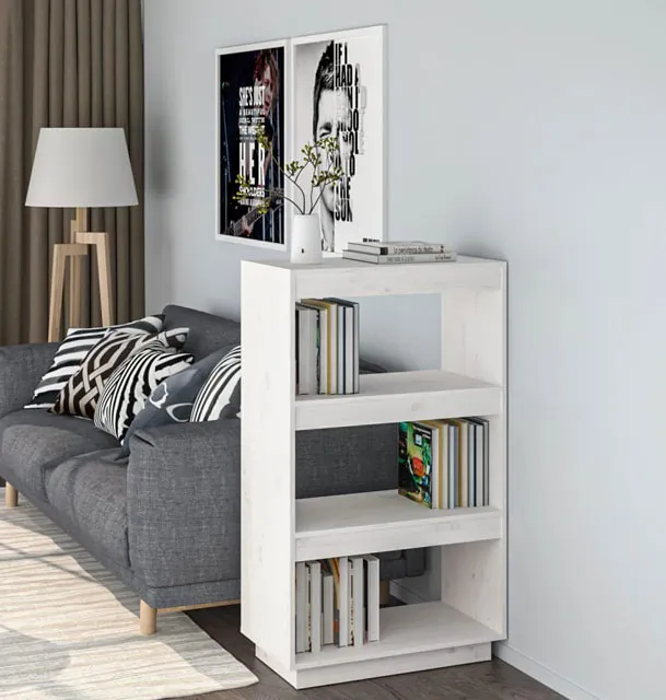Biały skandynawski regał stojący z drewna sosnowego - Lika 7X