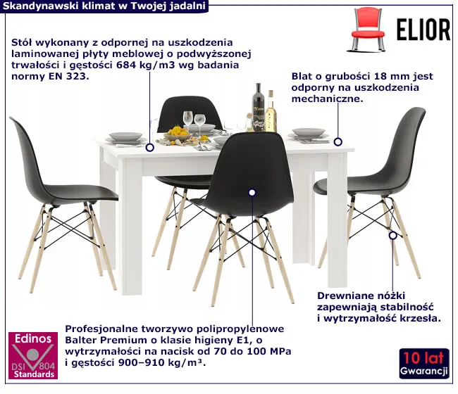 Dotyczy: Biały zestaw stół z 4 skandynawskimi krzesłami - Cinar