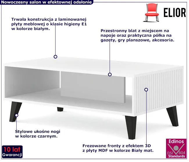 Dotyczy: Biały dwupoziomowy stolik kawowy z lamelami - Melis 13X