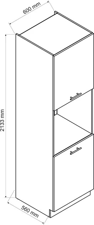 - Wymiary: szerokość 60 cm, wysokość 213,3 cm, głębokość 56 cm.