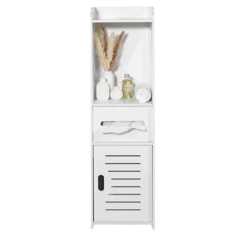 Dotyczy: Biała ażurowa wąska szafka łazienkowa - Luega 4X