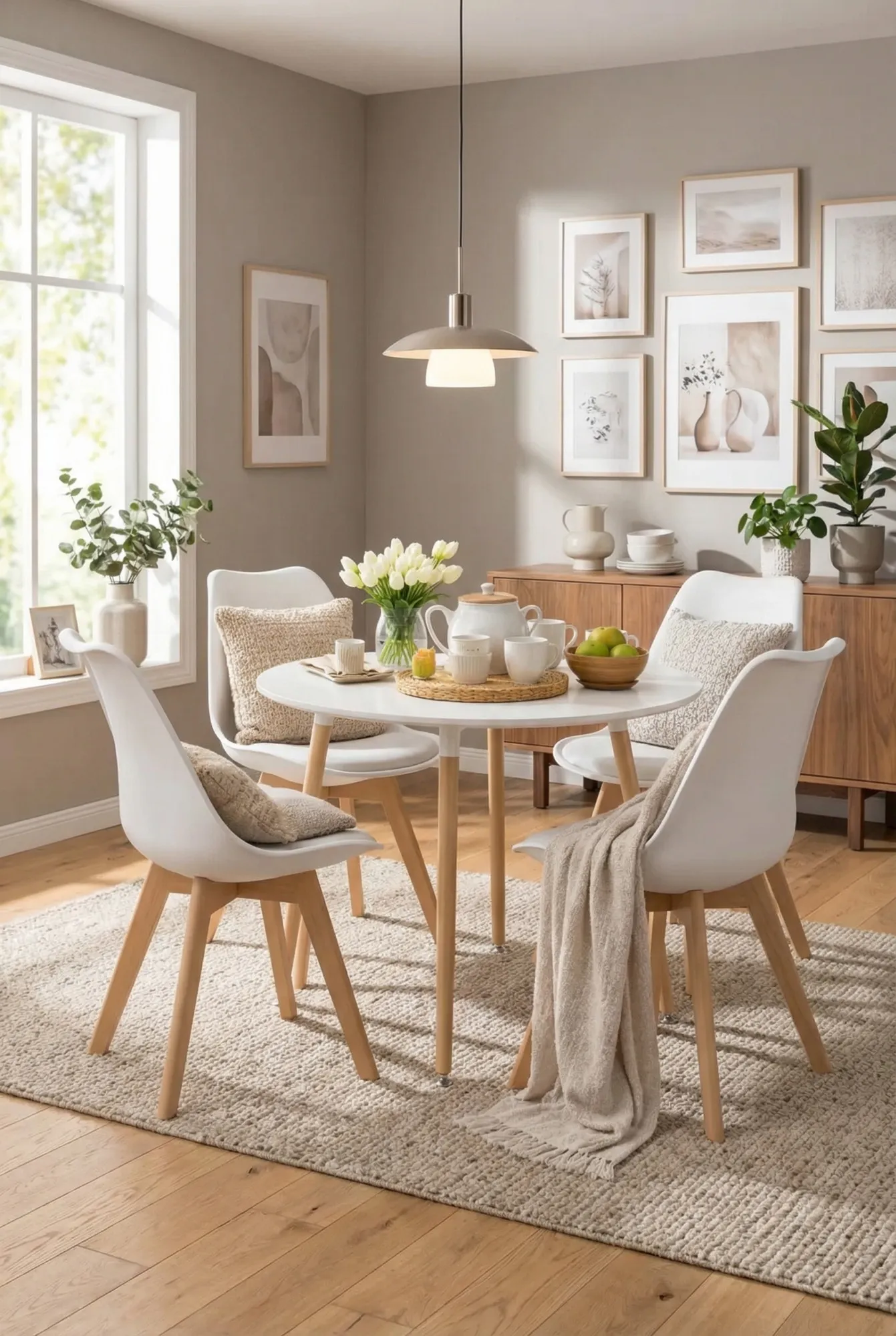 Dotyczy: Biały stół + 4 sztuki szarych krzeseł - Lenka 3X