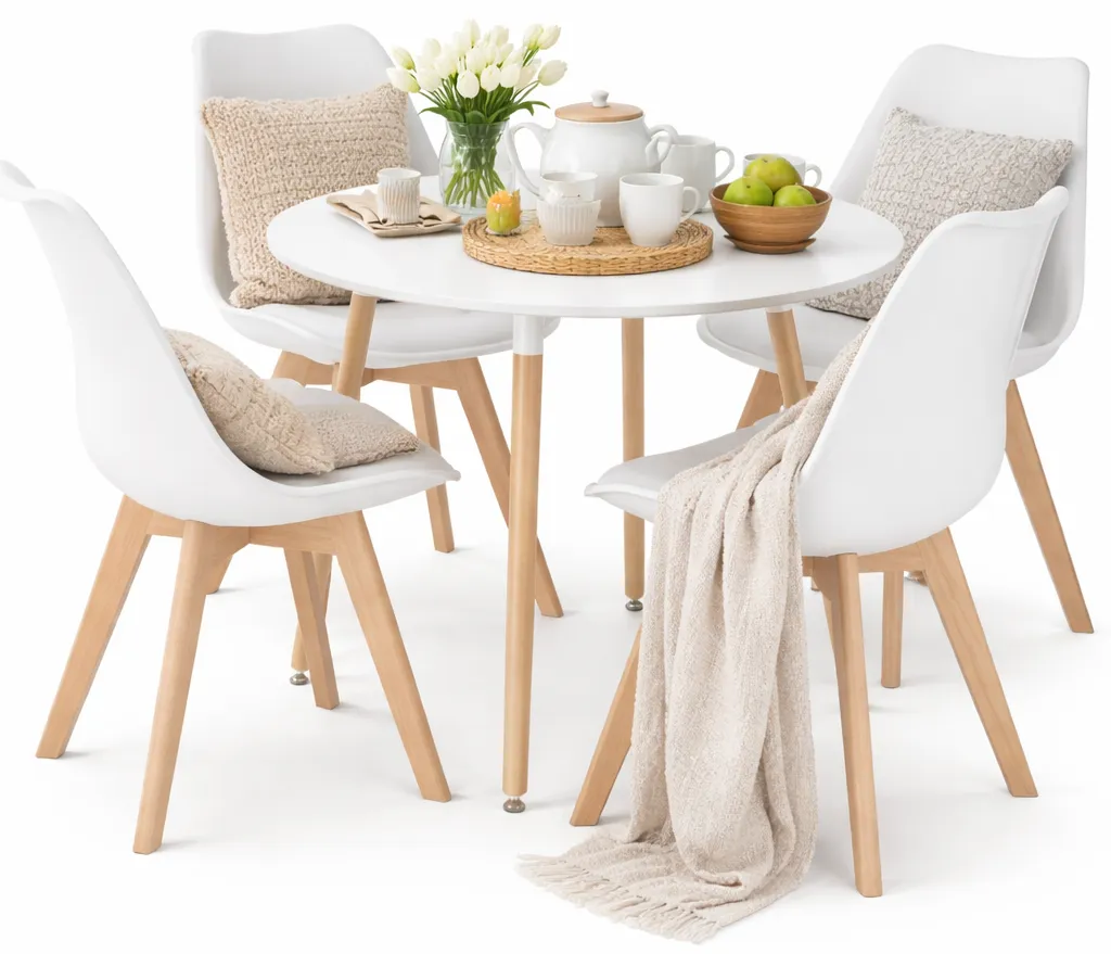 Dotyczy: Biały stół + 4 sztuki szarych krzeseł - Lenka 3X