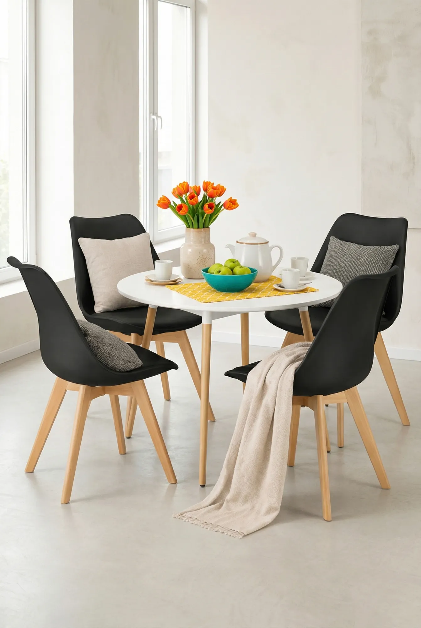 Dotyczy: Biały stół + 4 sztuki szarych krzeseł - Lenka 3X