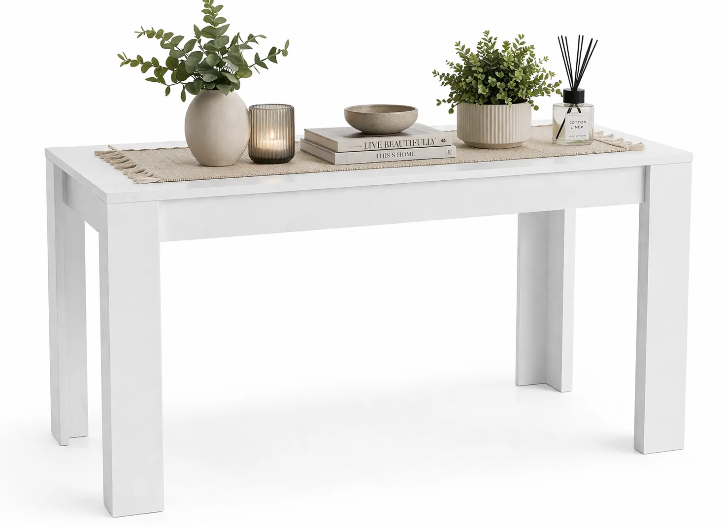 Biały stół Dulesio niesie ze sobą sporo korzyści dla wnętrza. Biel jest bowiem niezwykle neutralna, uniwersalna i elegancka. Z łatwością dopasujesz do niej dowolną ilość kolorów, uspokajając żywe i wyraziste barwy oraz ożywiając te neutralne.