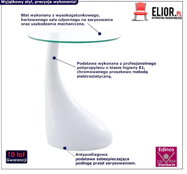 - Modna kolorystyka: biały, transparentny. Kliknij w link i sprawdź także inne białe stoliki kawowe w sklepie Edinos.pl. Stwórz swój praktyczny zestaw mebli.