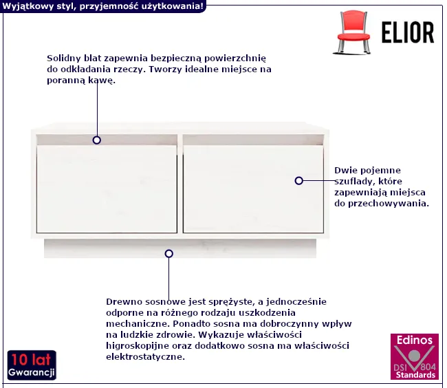 Zamawiając produkt w sklepie Edinos.pl otrzymujesz 100% gwarancję satysfakcji. Jeśli uznasz, że produkt zakupiony u nas nie spełnia Twoich oczekiwań, możesz zwrócić go do nas w ciągu 100 dni od daty zakupu, a my oddamy Ci pełną kwotę zamówienia. Ustawowo czas ten wynosi tylko 14 dni, ale jesteśmy tak pewni Twojego zadowolenia z naszych produktów, że postanowiliśmy wydłużyć ten termin do 100 dni, bo wierzymy, że dobre wnętrze nie potrzebuje słów. Czasem wystarczy jeden mebel, by poczuć się naprawdę u siebie. Dlatego tworzymy rzeczy, które nie dominują – ale współistnieją z Tobą. Są trwałe, wygodne, piękne w prostocie. Dają wolność wyboru i spokój w codziennym życiu. Dziekujemy za zaufanie.