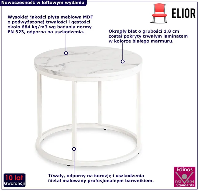 Dotyczy: Stolik kawowy z blatem w kolorze białego marmuru - Figo 4X