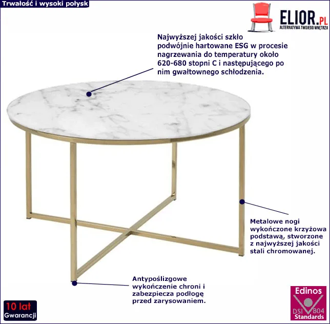 - Kolor: Biała imitacja marmuru i złote, metalowe nogi. Kliknij w link i sprawdź także inne stoliki kawowe w sklepie Edinos.pl. Stwórz swój praktyczny zestaw mebli.