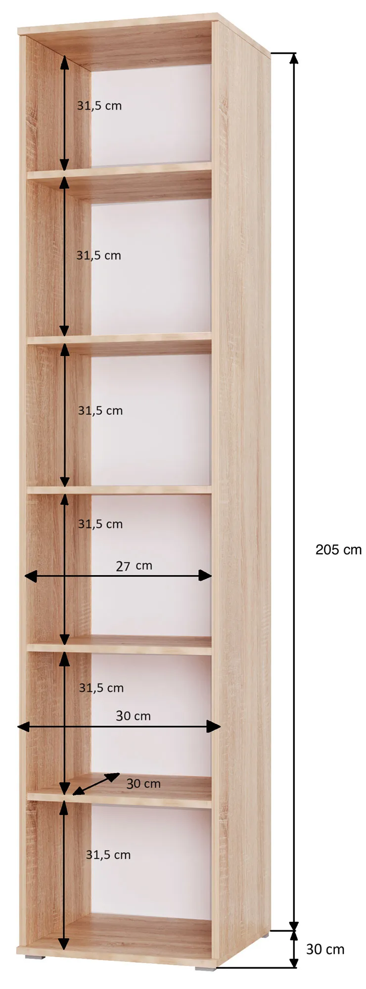 Dotyczy: Skandynawski wysoki regał 30 cm dąb sonoma - Aneris 3X