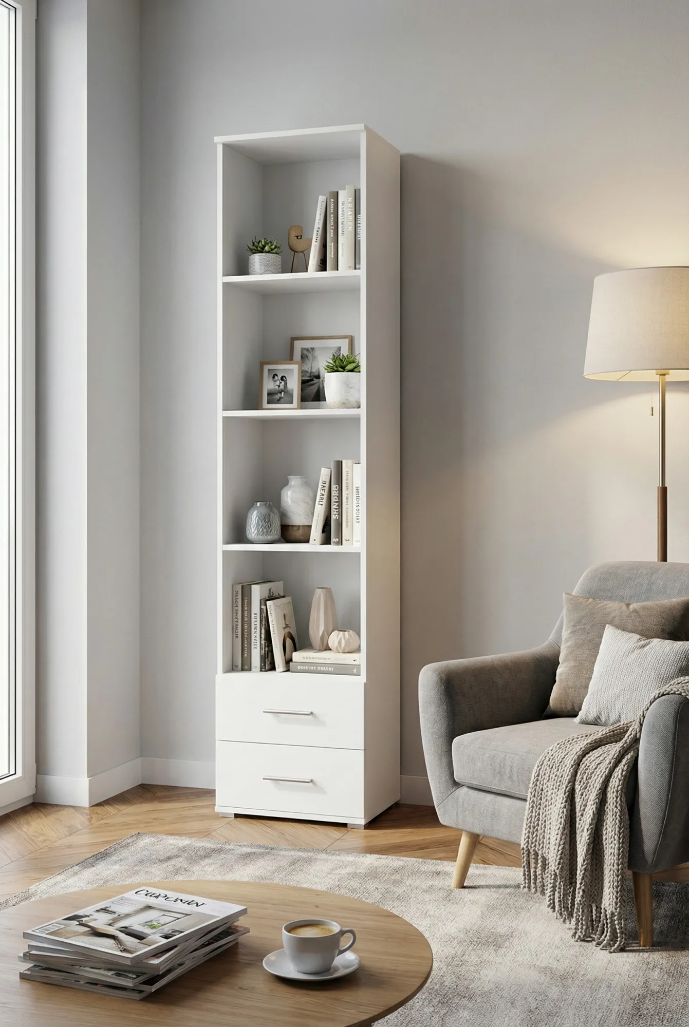 Dotyczy: Wysoki regał słupek z 2 szufladami grafit + dąb wotan - Asendri 9X