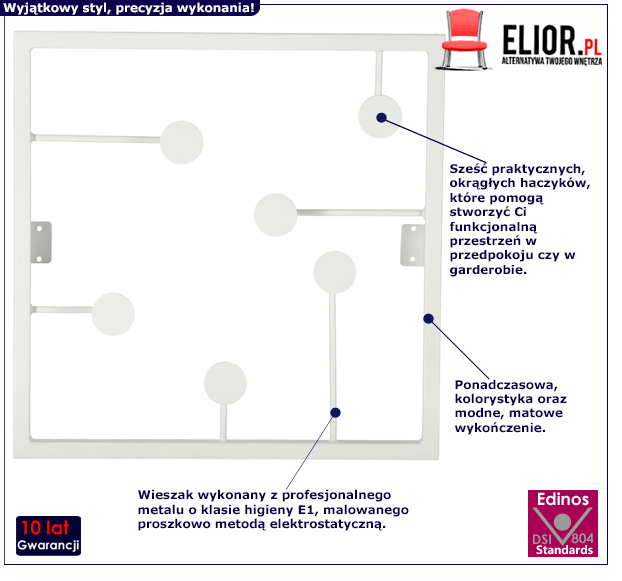 - Modna kolorystyka: biały. Kliknij w link i sprawdź także inne wieszaki do przedpokoju w sklepie Edinos.pl. Stwórz swój praktyczny zestaw mebli.