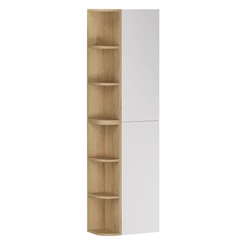 Słupek łazienkowy Verdessa 11X to idealne rozwiązanie dla tych, którzy chcą maksymalnie wykorzystać pionową przestrzeń, nie rezygnując z estetyki i lekkości aranżacji. Smukła bryła łączy zamkniętą część z gładkimi frontami oraz otwarte półki w dekorze drewna, które umożliwiają szybki dostęp do najczęściej używanych akcesoriów. Matowy, biały front wprowadza do wnętrza spokój i wizualną harmonię, a naturalne wybarwienie drewna ociepla całość i nadaje jej przyjazny charakter. To mebel, który porządkuje łazienkę w sposób dyskretny, ale wyraźnie odczuwalny na co dzień.