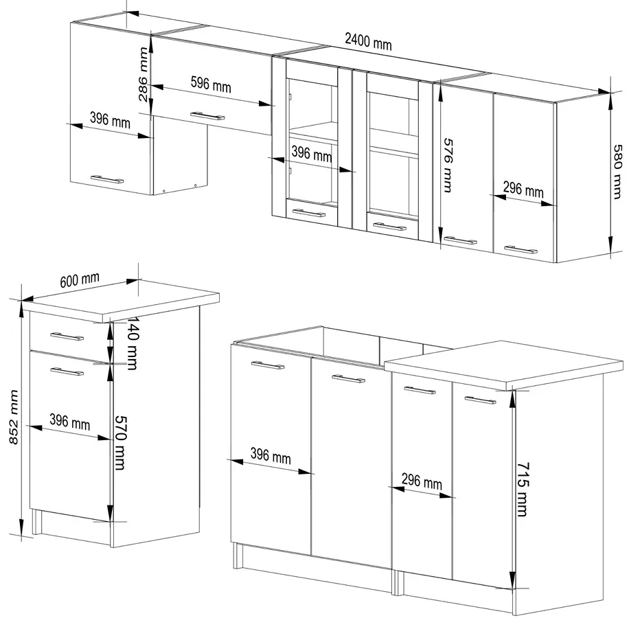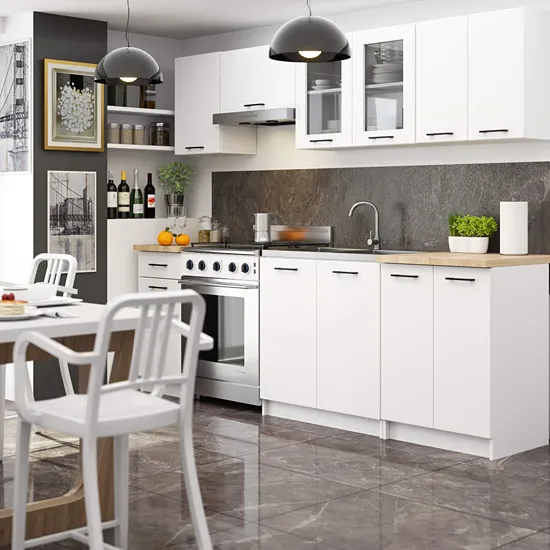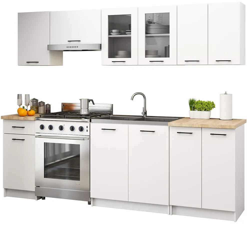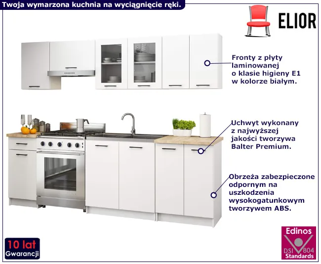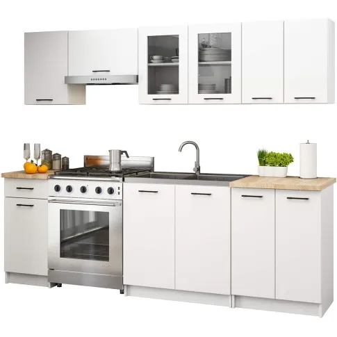 Dotyczy: Biały komplet mebli kuchennych z witryną 240 cm - Vivienne