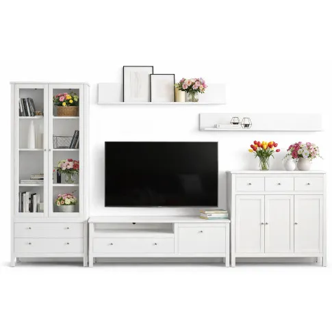 Biały zestaw mebli z witryną do salonu - Omaron 25X