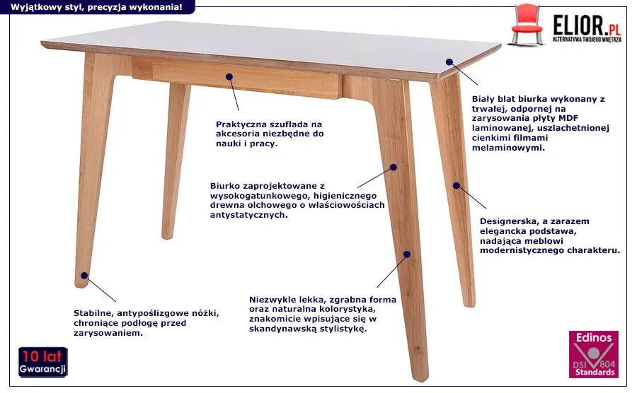 - Modna kolorystyka: naturalne drewno olchowe oraz modernistyczna biel. Kliknij w link i sprawdź także inne biurka w sklepie Edinos.pl. Stwórz swój praktyczny zestaw mebli.