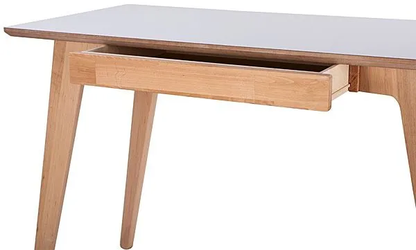 Zaprojektowane z designerskim wyczuciem biurko Exton powstało z wysokiej klasy, starannie dobranych i trwałych materiałów meblarskich. Dzięki temu użytkuje się go naprawdę wygodnie i przyjemnie. Podstawę fantastycznego Exton wykonano z wysokiej jakości, higienicznego drewno olchowego posiadającego właściwości antystatyczne. Zostało ono poddane specjalistycznemu lakierowaniu metodą matowej struktury, dzięki czemu cechuje się odpornością na zarysowania oraz zabrudzenia. Profesjonalna obróbka drewna zapewnia bezpieczne użytkowanie biurka przez lata. Drewno to surowiec idealny dla alergików, gdyż kurz nie osiada na nim łatwo. Exton zapewnia więc zdrowe środowisko do nauki i pracy. Blat osadzony na stabilnej podstawie to trwała, odporna na zarysowania płyta MDF laminowana, uszlachetniona dodatkowo cienkimi filmami melaminowymi. Profesjonalna obróbka drewna oraz płyty MDF zapewnia bezpieczne użytkowanie biurka przez lata. To ważne, by meble pracownicze były naprawdę funkcjonalne. Na szczęście z modernistycznym, komfortowym biurkiem Exton w gustownej bieli blatu i pięknej, naturalnej odsłonie podstawy nie trzeba się o to martwić. Świetna jakość wykonania mebla to gwarancja wieloletniego użytkowania bez jego uszkodzeń. Modnym i starannie zaprojektowanym biurkiem Exton o jakże wdzięcznej, minimalistycznej formie możesz cieszyć się niezmiennie i wciąż na nowo.