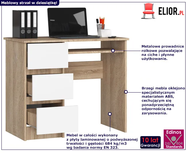 Dotyczy: Biurko komputerowe z szufladami dąb sonoma - Berula 3X