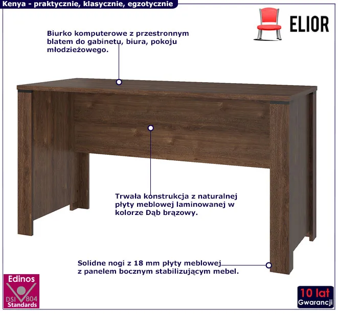 • Kolor: Dąb brązowy. Kliknij w link i sprawdź także inne biurka brązowe w sklepie Edinos.pl.