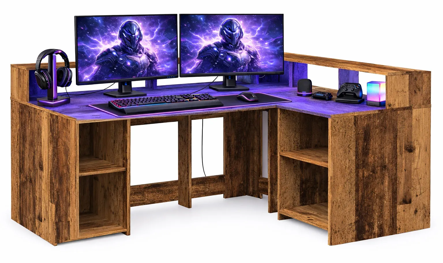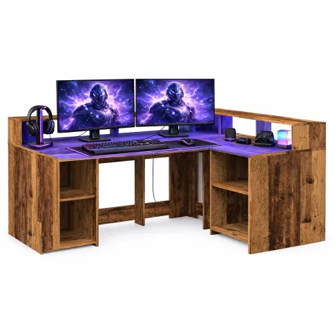 Narożne biurko gamingowe podświetlane Relond stare drewno