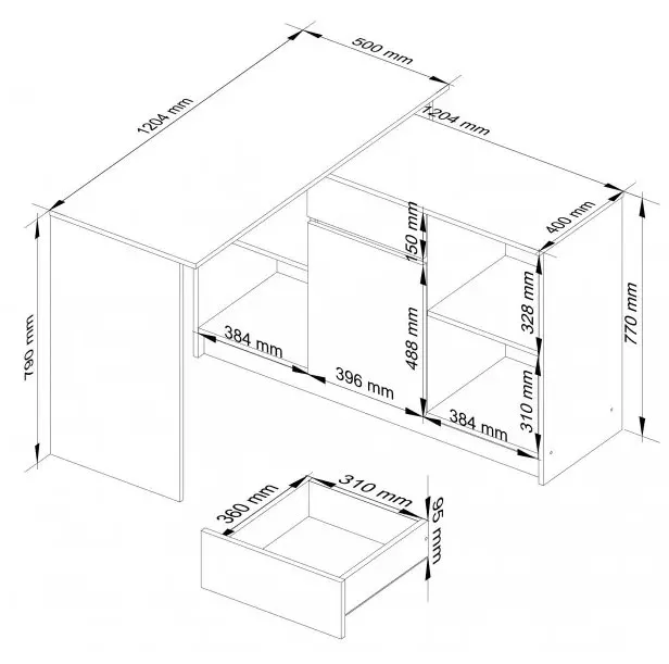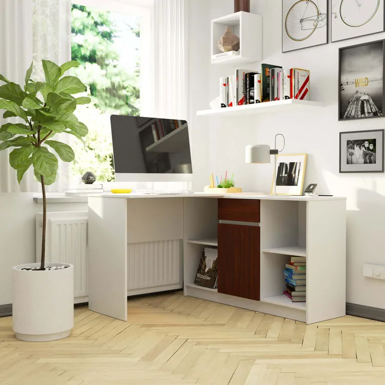 To co wyróżnia prezentowane przez nas biurko to przede wszystkim funkcjonalność i właściwa organizacja przestrzeni przeznaczonej do nauki i pracy. Odpowiednie rozmiary blatu pozwalają na ułożenie dokumentów, materiałów lub akcesoriów biurowych, a także ustawienie monitora w dogodnym miejscu. Jest to również komfortowy blat roboczy służący do sporządzania notatek, odrabiania lekcji lub innych obowiązków. Optymalne wymiary mebla zapewniają wygodną pozycję ciała oraz pozwalają na odpowiednie ułożenie nóg w przestrzeni pod blatem. Zaletą, która z pewnością Ci zaimponuje to półki, szafka i szuflada znajdujące się w komodzie dołączonej do biurka. Dzięki temu, że jest to dodatkowy element a nie nie jednoczęściowe biurko można umiejscowić komodę z lewej lub prawej strony w zależności od preferencji. Jest to obszar służący do uporządkowania i właściwej organizacji przestrzeni biurowej, która usprawni codzienną pracę lub naukę. Subtelna kolorystyka to zaleta, dzięki której dopasujesz mebel do wielu różnych pomieszczeń zaaranżowanych w różnych stylach. Będzie to idealny element umeblowania pokoju dziecięcego, młodzieżowego, pracowni, biura a także gabinetu. Jako praktyczny dodatek wypełni wnętrza zaprojektowane w stylu minimalistycznym, nowoczesnym, klasycznym i skandynawskim.