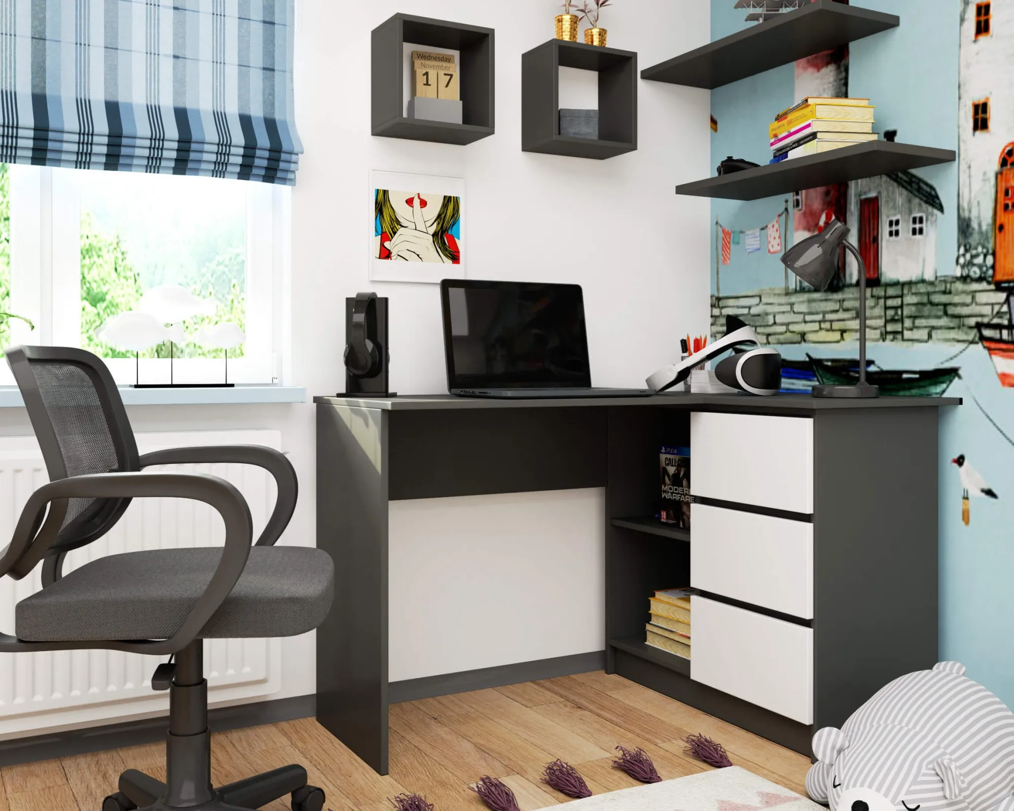 • nowoczesny i uniwersalny wygląd - biurko pasuje do różnych rodzajów aranżacji wnętrz,