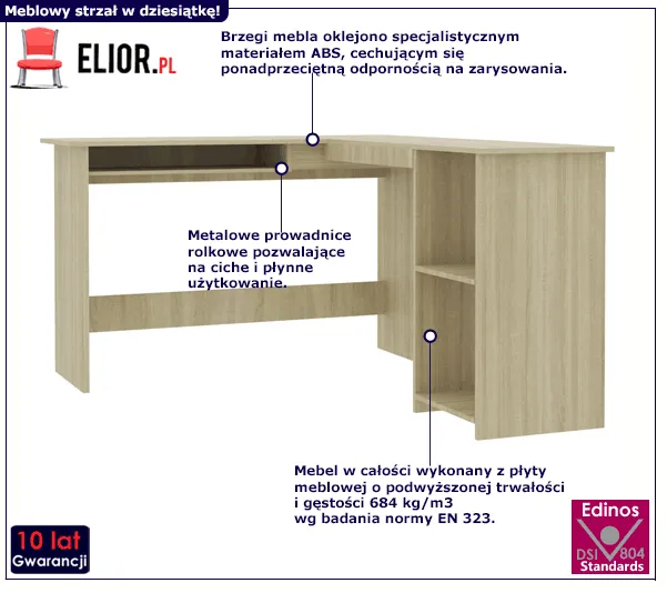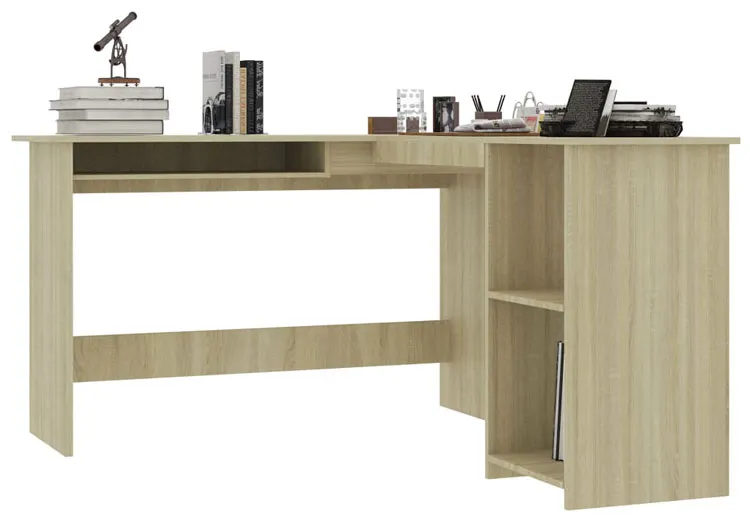 Dotyczy: Biurko narożne z regałem biały + dąb sonoma - Lorenza 3X