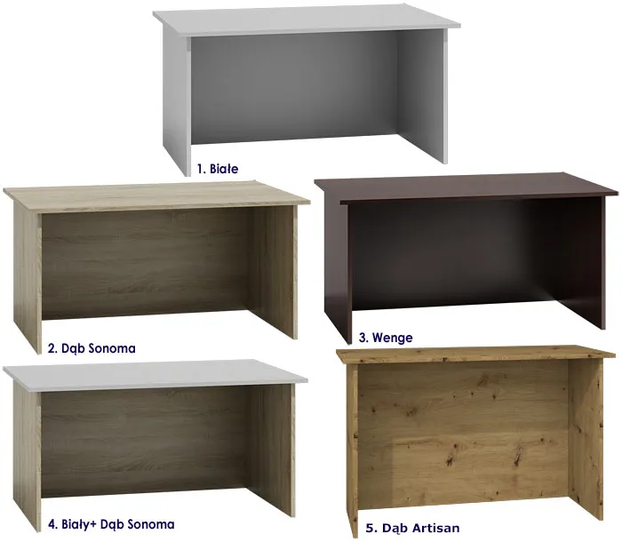 W ofercie posiadamy także biurka Hirell w kolorach białym, dąb sonoma, biały + dąb sonoma oraz dąb artisan. Jeżeli jesteś zainteresowany innym kolorem, zapraszamy tutaj.